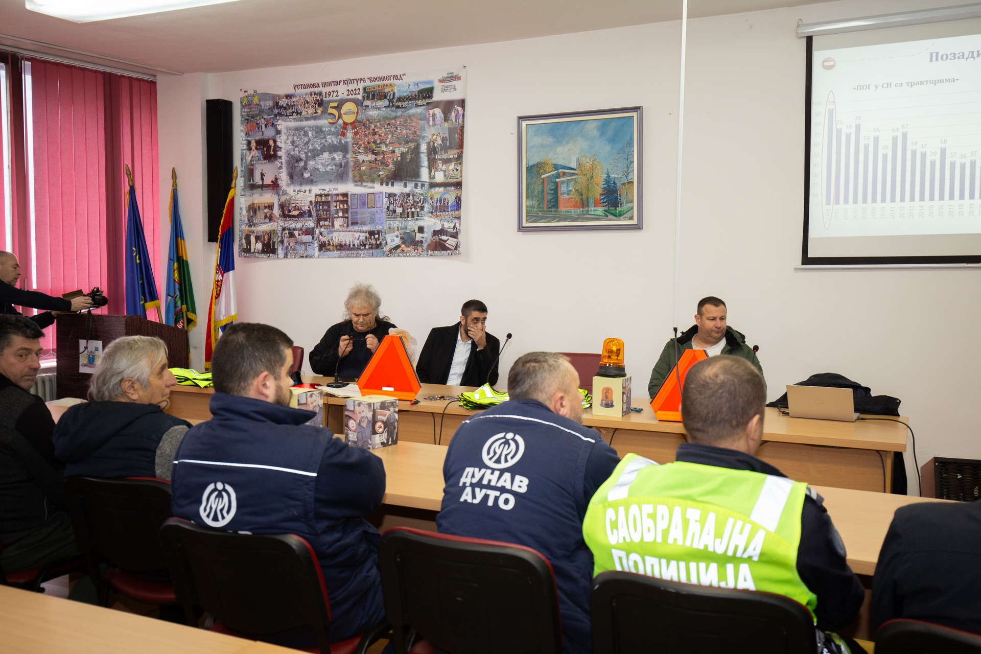 Током трибине, учесници су упознати са најчешћим ризицима са којима се трактористи сусрећу на путевима, значајем техничке исправности трактора, коришћењем заштитне опреме и поштовањем саобраћајних прописа. Посебна пажња посвећена је превенцији саобраћајних незгода и заштити живота свих учесника у саобраћају, те су трактористима у циљу веће безбедности подељена ротациона светла, ретро - рефлектујући прслуци и табле.